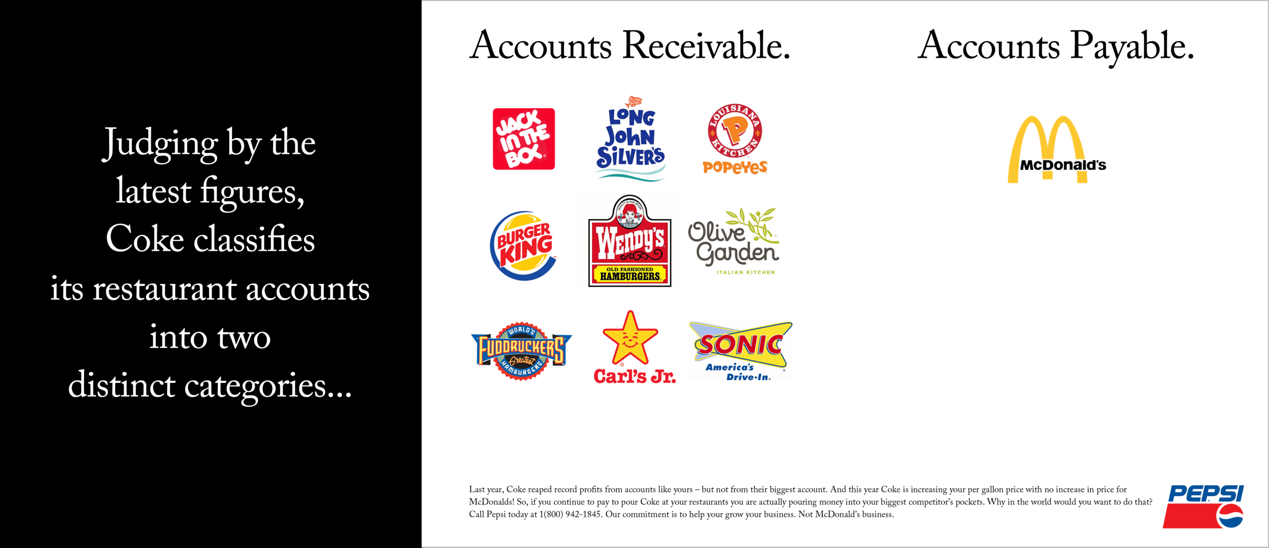 A very successful ad in the B2B magazine "Restaurant News". How successful? $13,000,000 in business switched to Pepsi the next day.